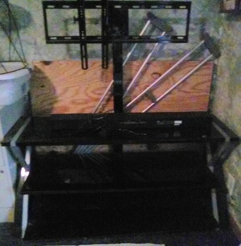 2 shelf glass TV stand with sound bar. Good condition!... |